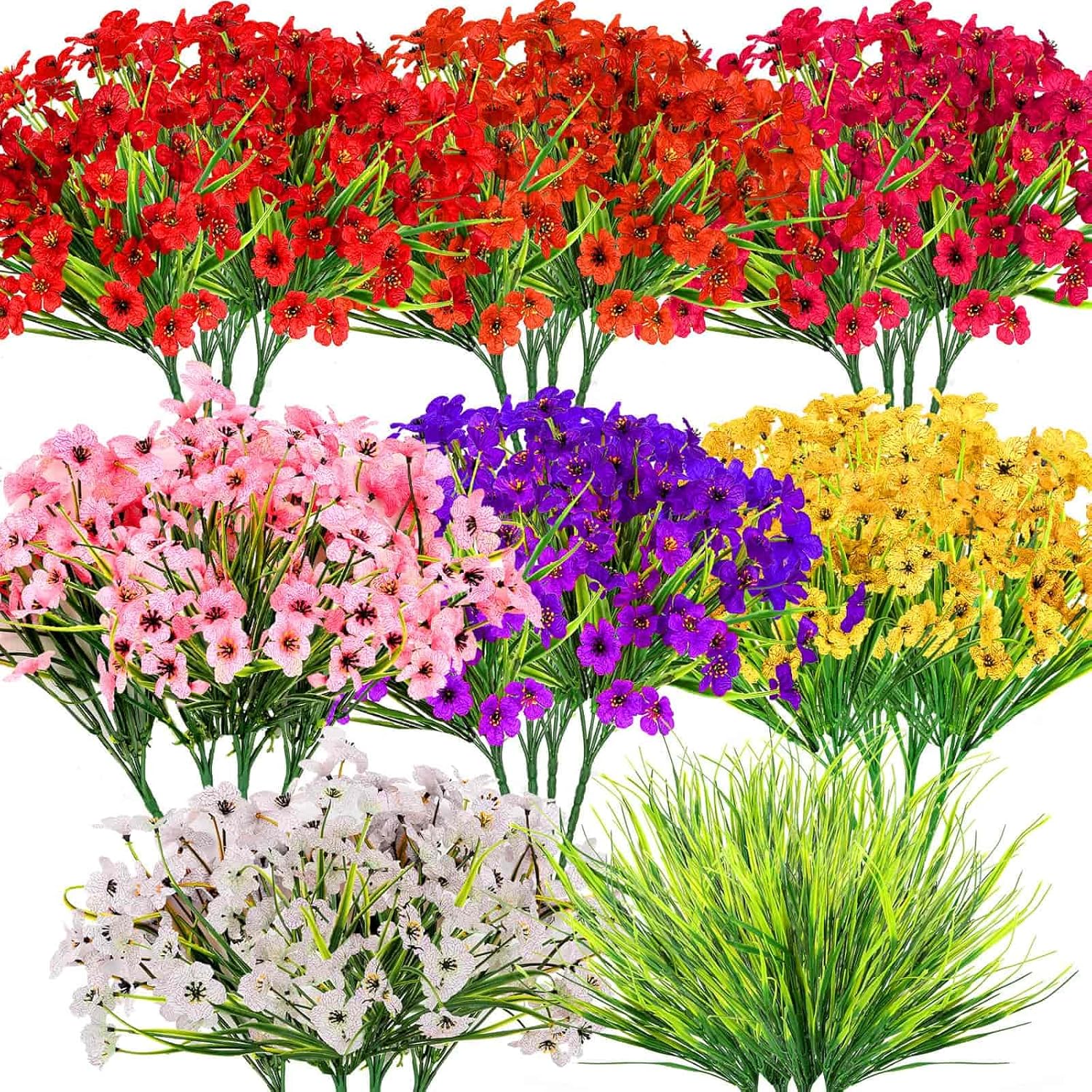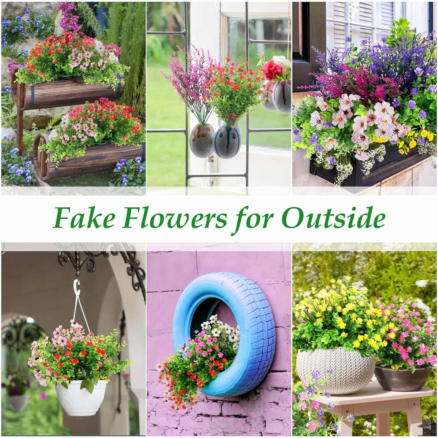 24 Bundles Artificial Flowers for Outdoors/Indoors, Fake Flowers Plants for Indoor Outside Garden Porch Window Box Home Wedding Farmhouse(8 Color)