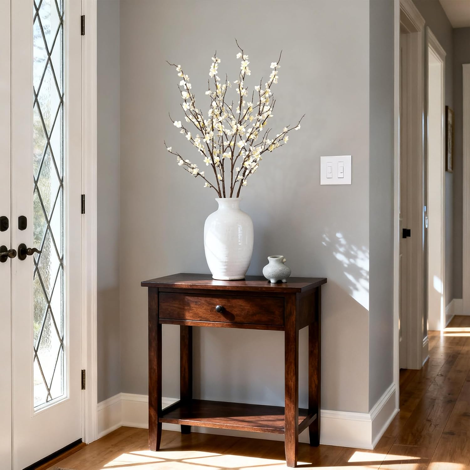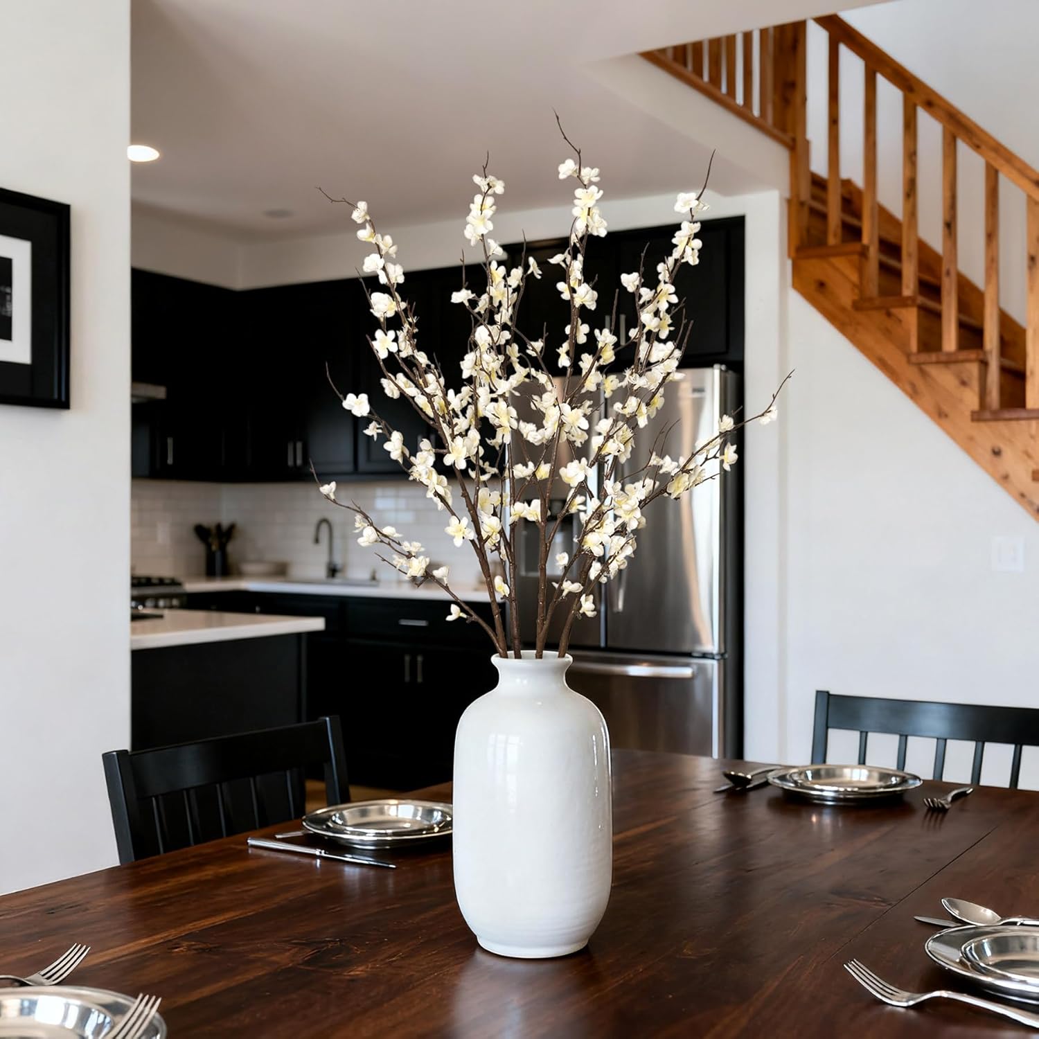 INXUGAO 12 PCS Faux Cherry Blossom Branches Decor 18.11 Inch Fake Artificial Cherry Flowers for Home Indoor Decoration Vase Arrangement Table Living Room Bedroom Spring Decor
