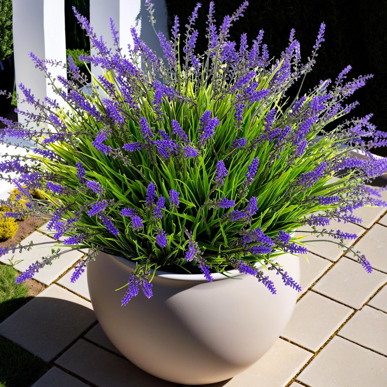 Artificial Flowers for Outdoors, Faux Spring Silk Flowers with Eucalyptus Leaves, UV Resistant Fake Plants for Garden Home Decoration, Outdoor Flower Pots (Mix of Hot Pink, Red, Purple, Yellow)