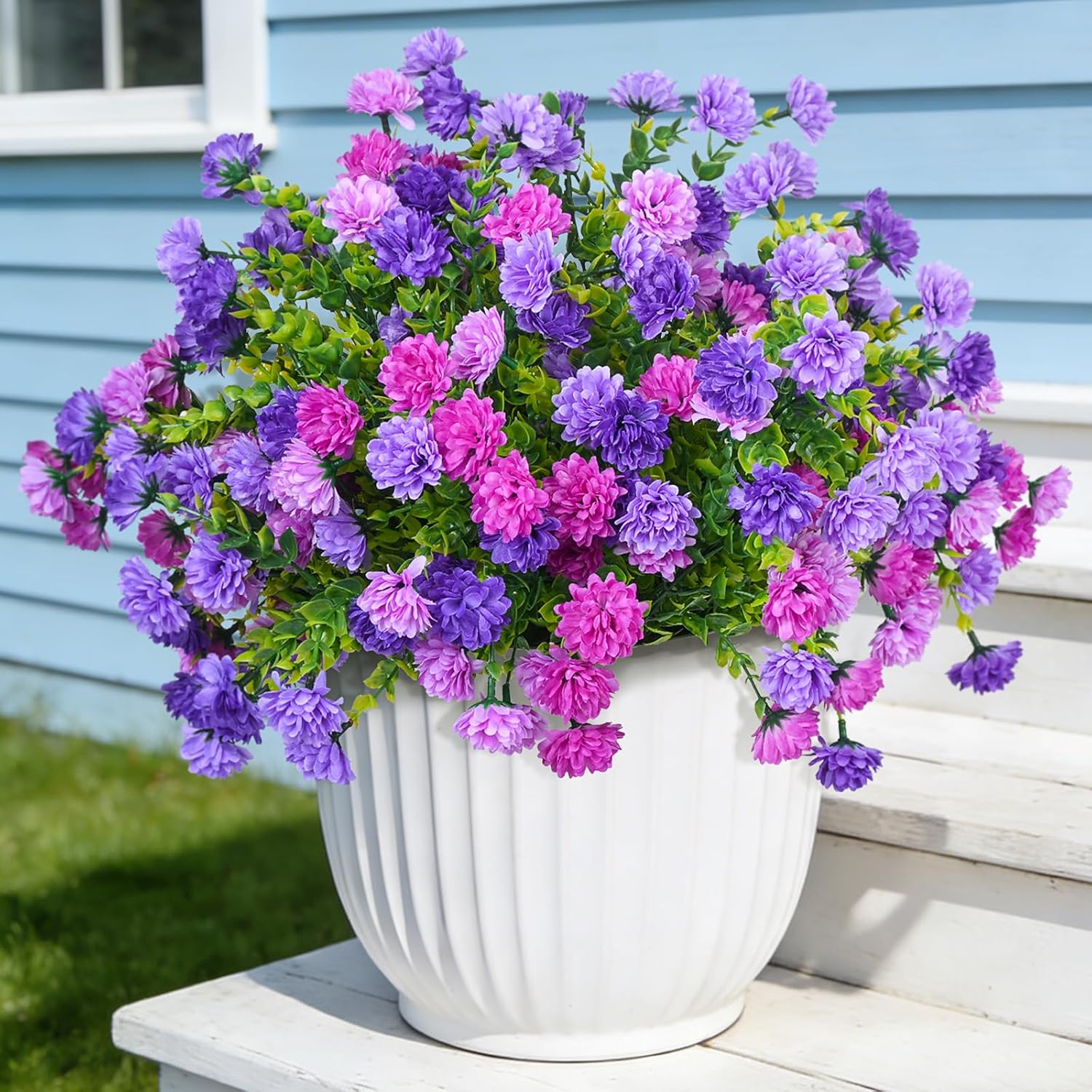 24 Bundles Artificial Flowers for Outdoors/Indoors, Fake Flowers Plants for Indoor Outside Garden Porch Window Box Home Wedding Farmhouse(8 Color)