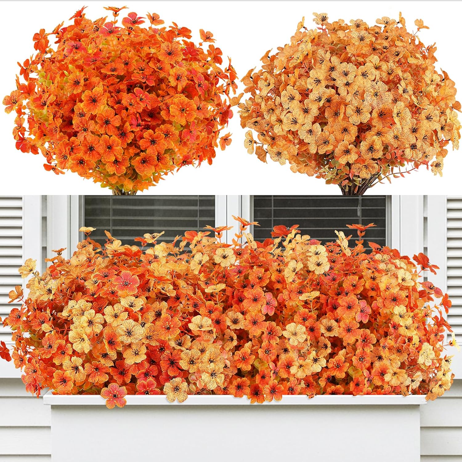 24 Bundles Artificial Flowers for Outdoors/Indoors, Fake Flowers Plants for Indoor Outside Garden Porch Window Box Home Wedding Farmhouse(8 Color)