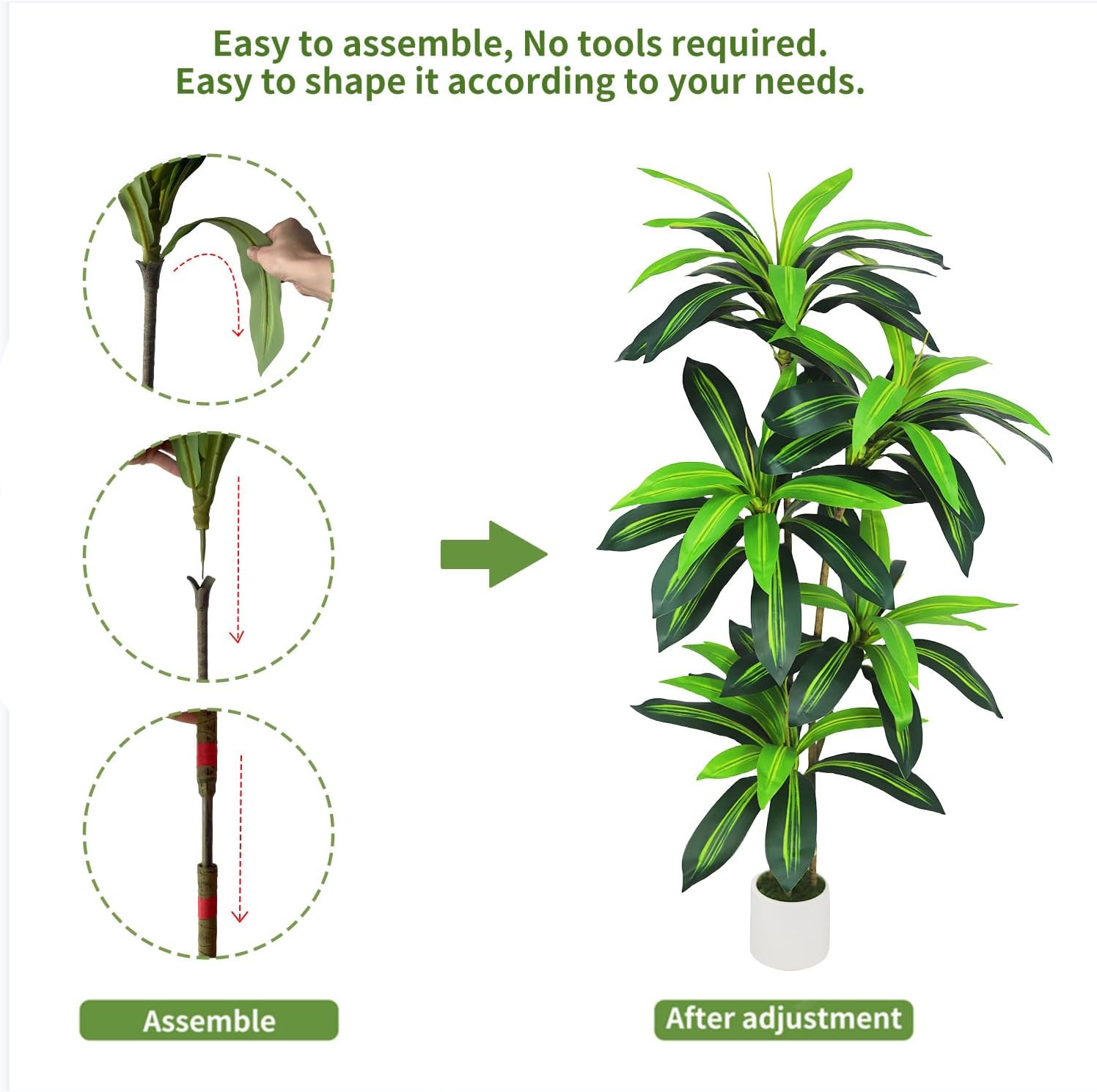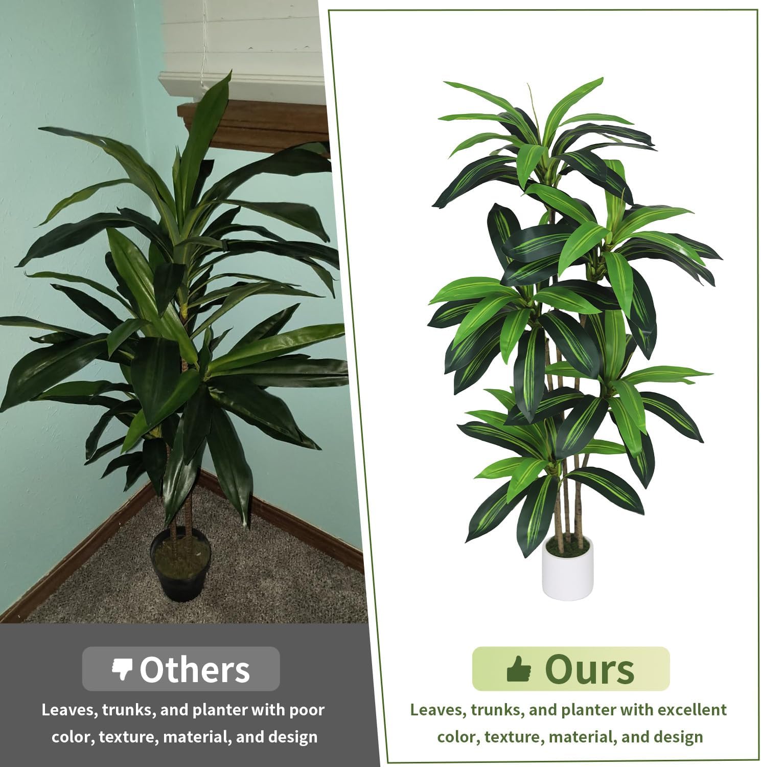 OAKRED Artificial Fiddle Leaf Fig Tree with White Planter,5ft Tall Fake Tree with Natural Wood Trunk for Home Decor, Faux Ficus Tree Fake Moss for Indoor Office Living Room