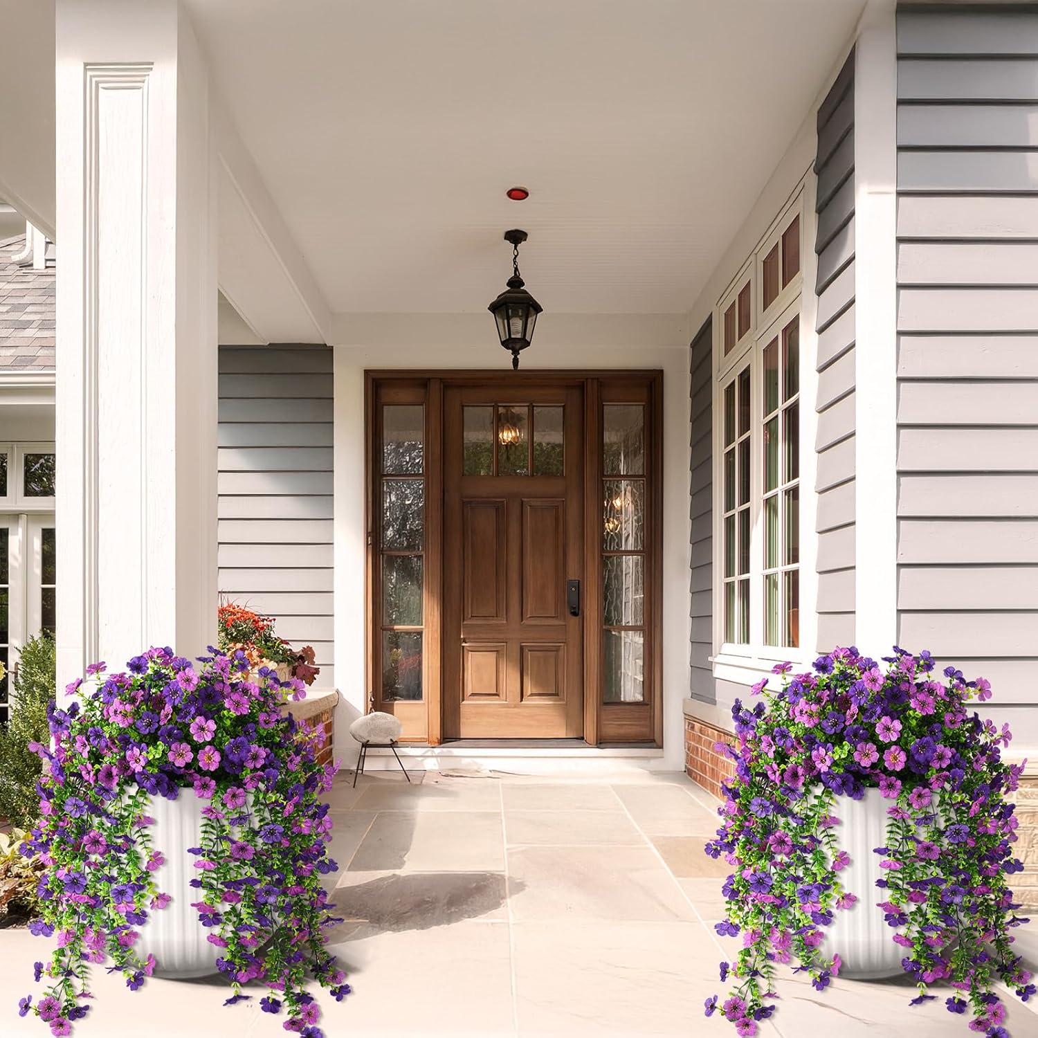 6 Pcs Artificial Petunia Flowers for Outdoors, Fake Flowers for Outdoor Planter, UV Resistant Realistic Faux Petunias Plants for Outside No Fade for Garden Porch Patio Indoor Decor(Double Purple)