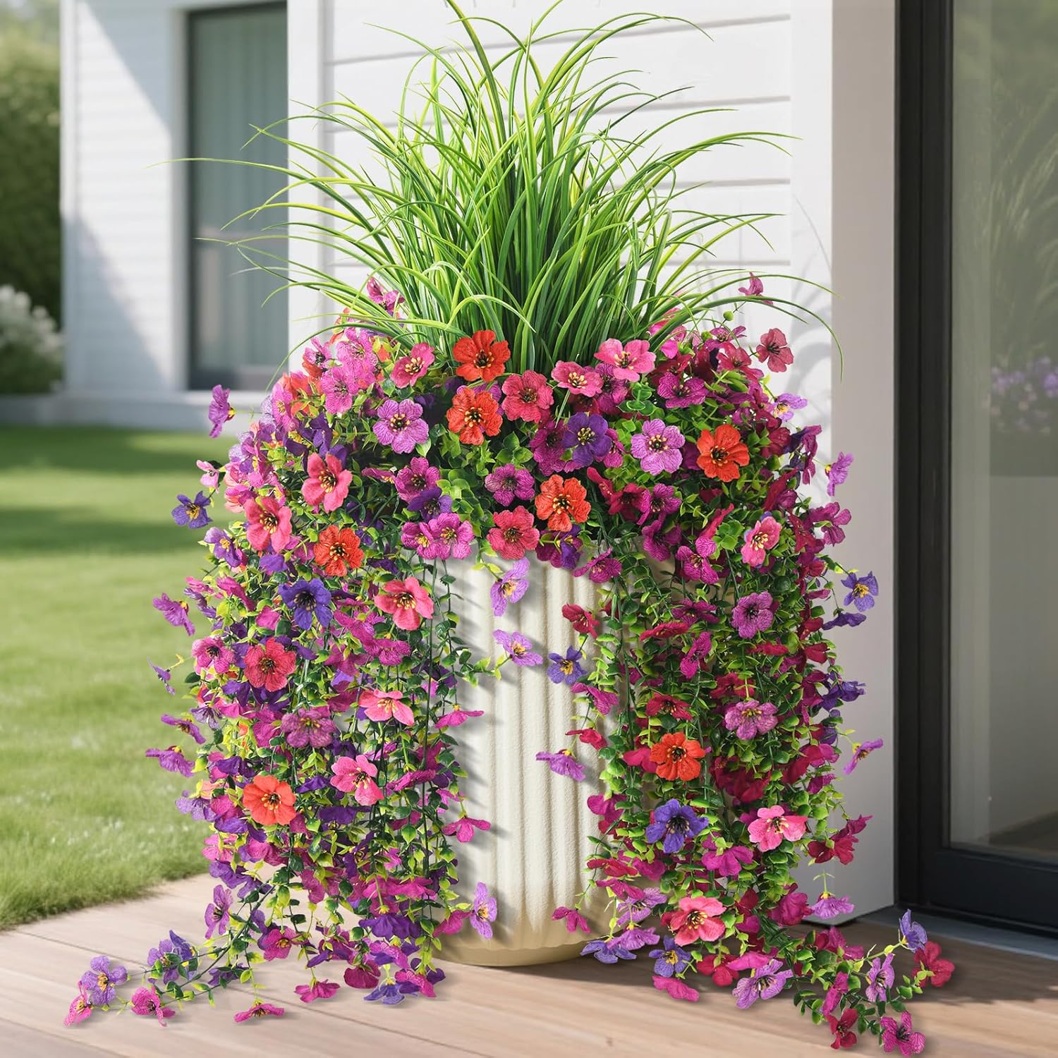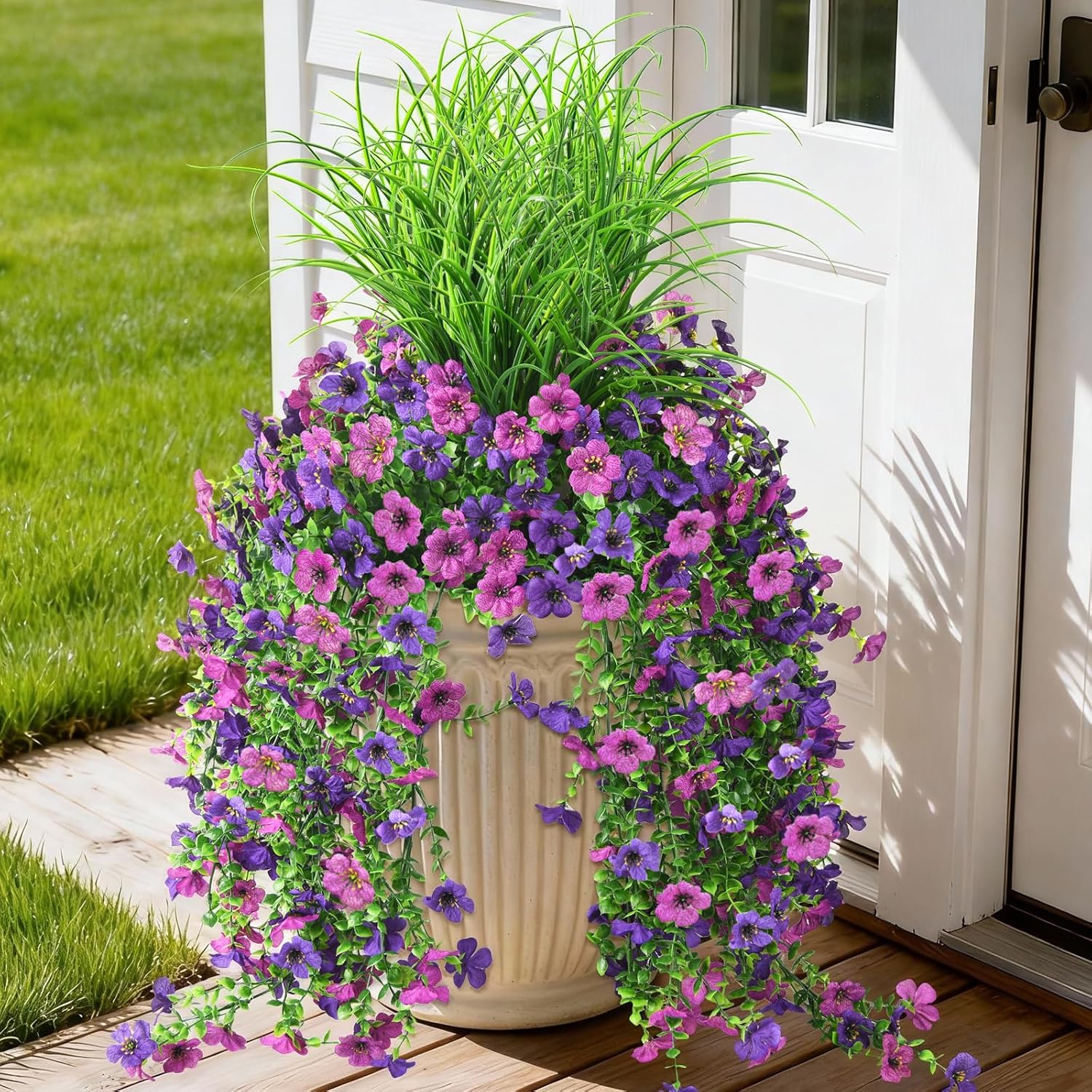 Hrobek Fake Artificial Flowers for Outdoors Decoration,4 Bundles Silk Faux Spring Flowers with Plants Leaves UV Resistant for Planter Front Door Porch Yard Patio Window Box Home Indoor Decor