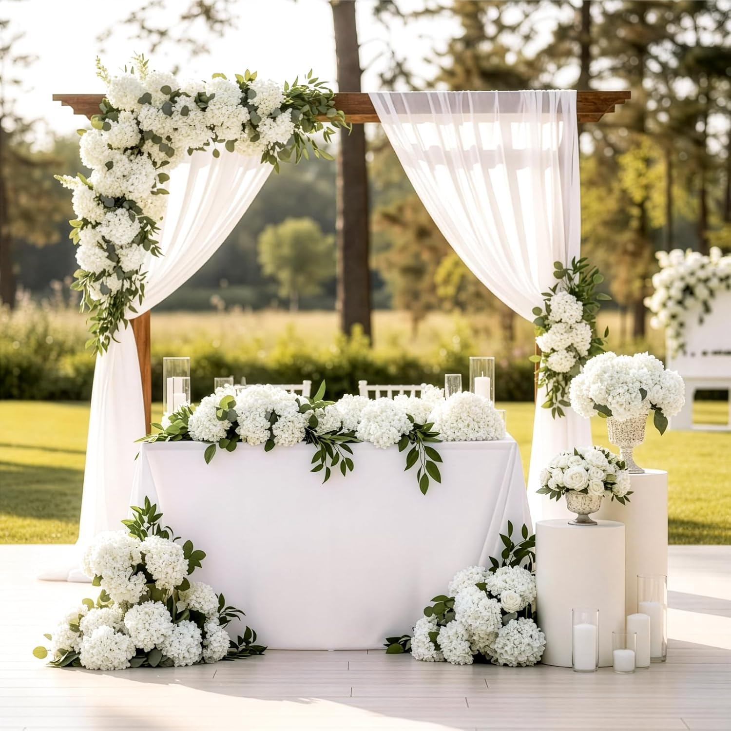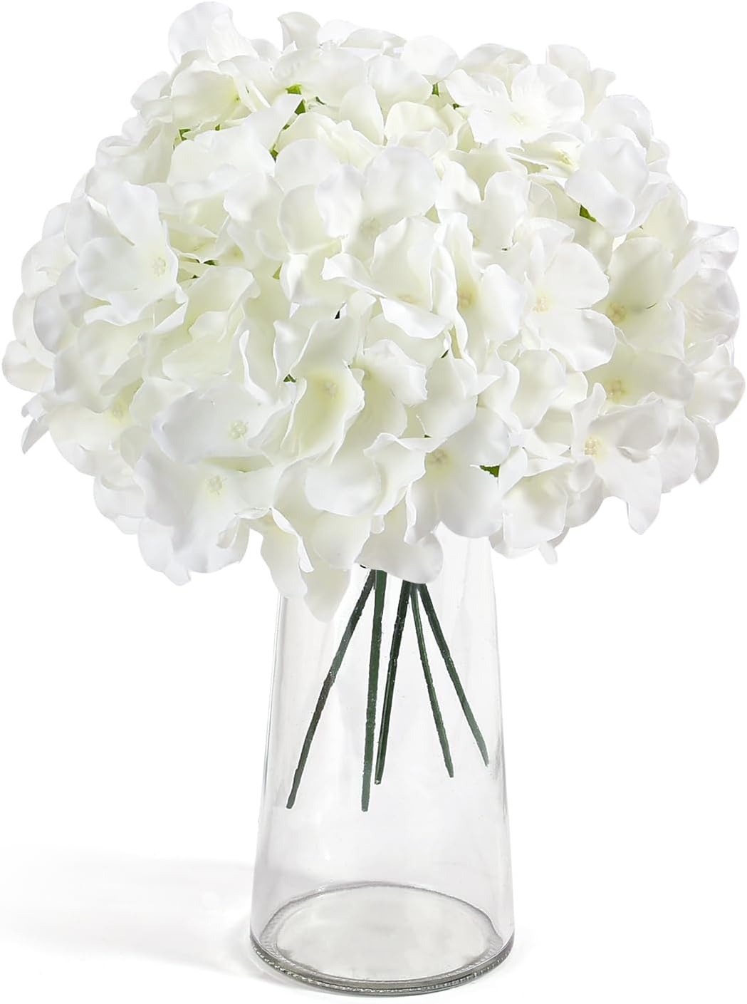 Kimura's Cabin 6pcs White Hydrangea Artificial Flowers Silk Fake Hydrangeas faux hydrangea flowers With Stems for Wedding Bouquets Arrangement Home Table Centerpieces Baby Shower Party Decoration