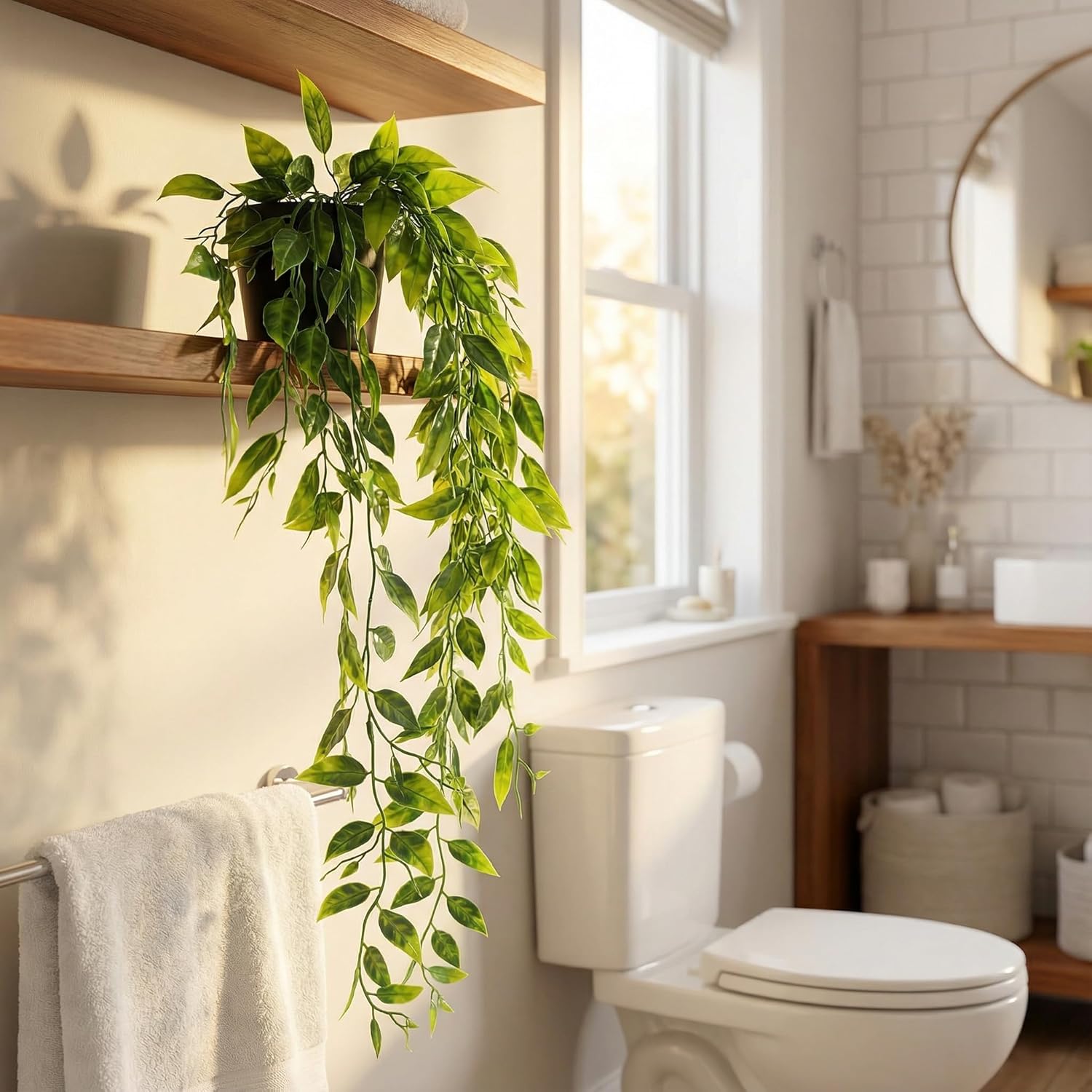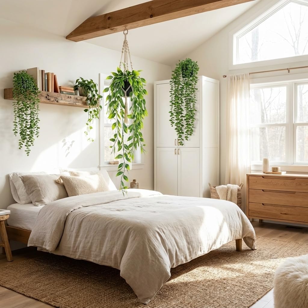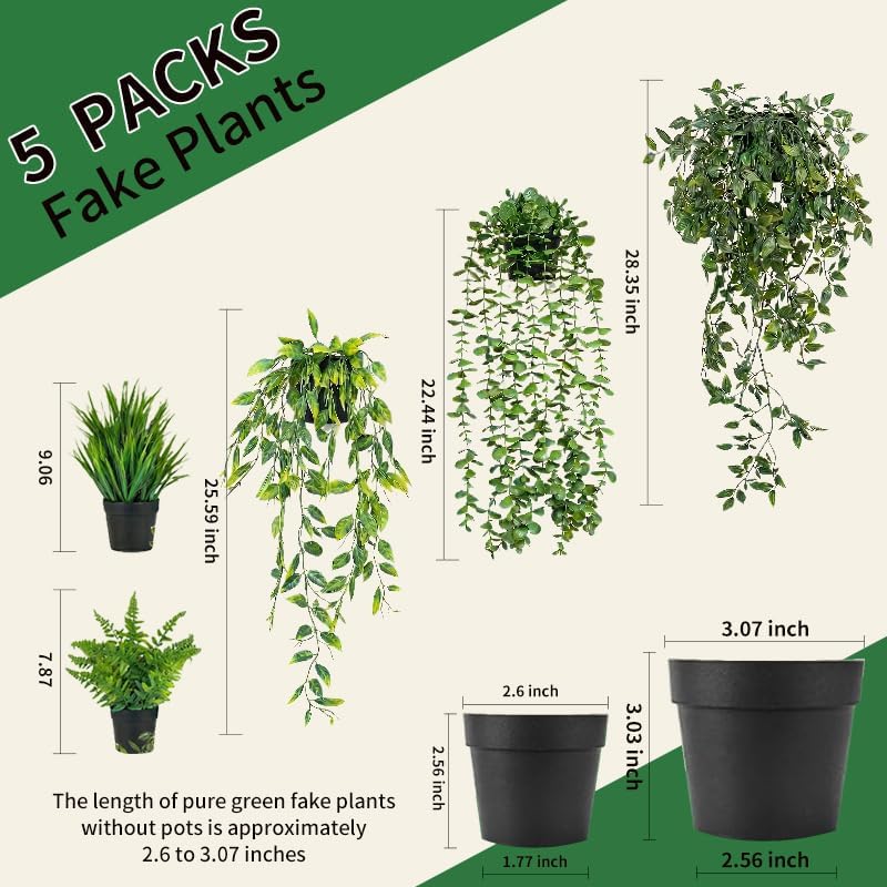 CEWOR Fake Plants Artificial Plants Indoor Faux Plant for Home Decor Silk Realistic Hanging Plants Potted Aesthetic Fake Pothos for Shelves Office Bedroom Bathroom Decor (Green)