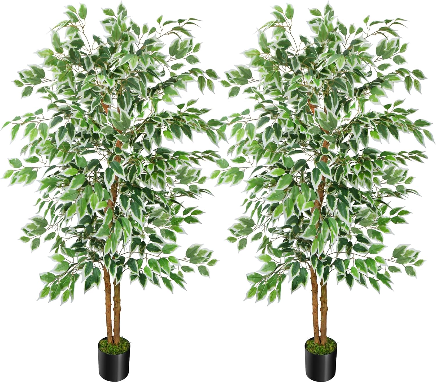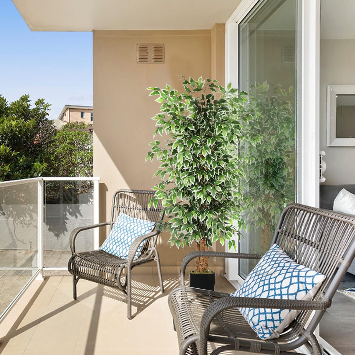 6FT Artificial Palm Tree, Tall Faux Palm Tree Indoor with Fake Plants Tall, Artificial Plants with Lifelike Leaves for Home Office Decor (White)