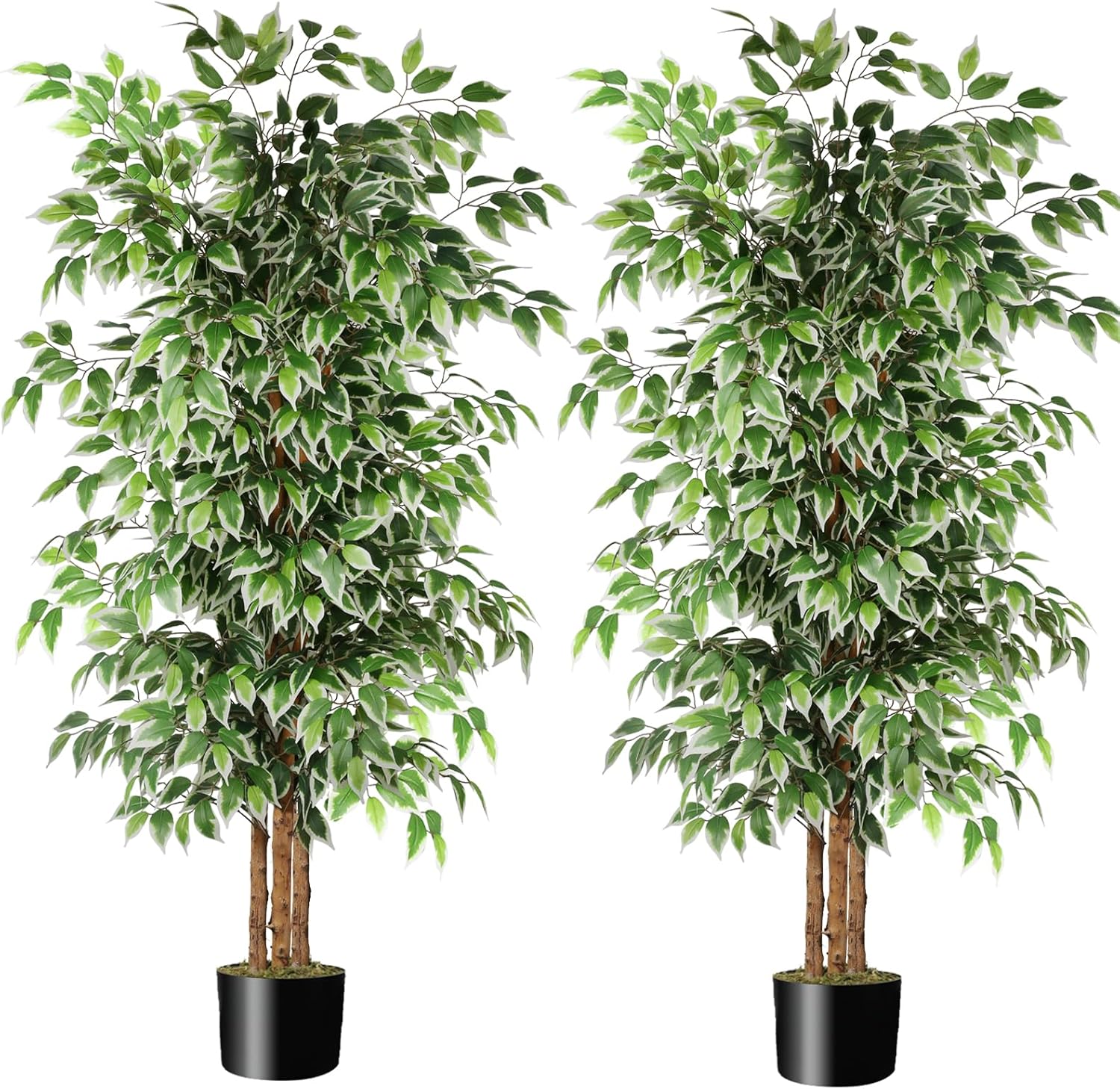 Bellacat Faux Black Olive Tree 7ft, Tall Faux Trees Indoor with Natural Trunk and Realistic Leaves. 7 Feet(84in) Artificial Tree for Home Office Décor.