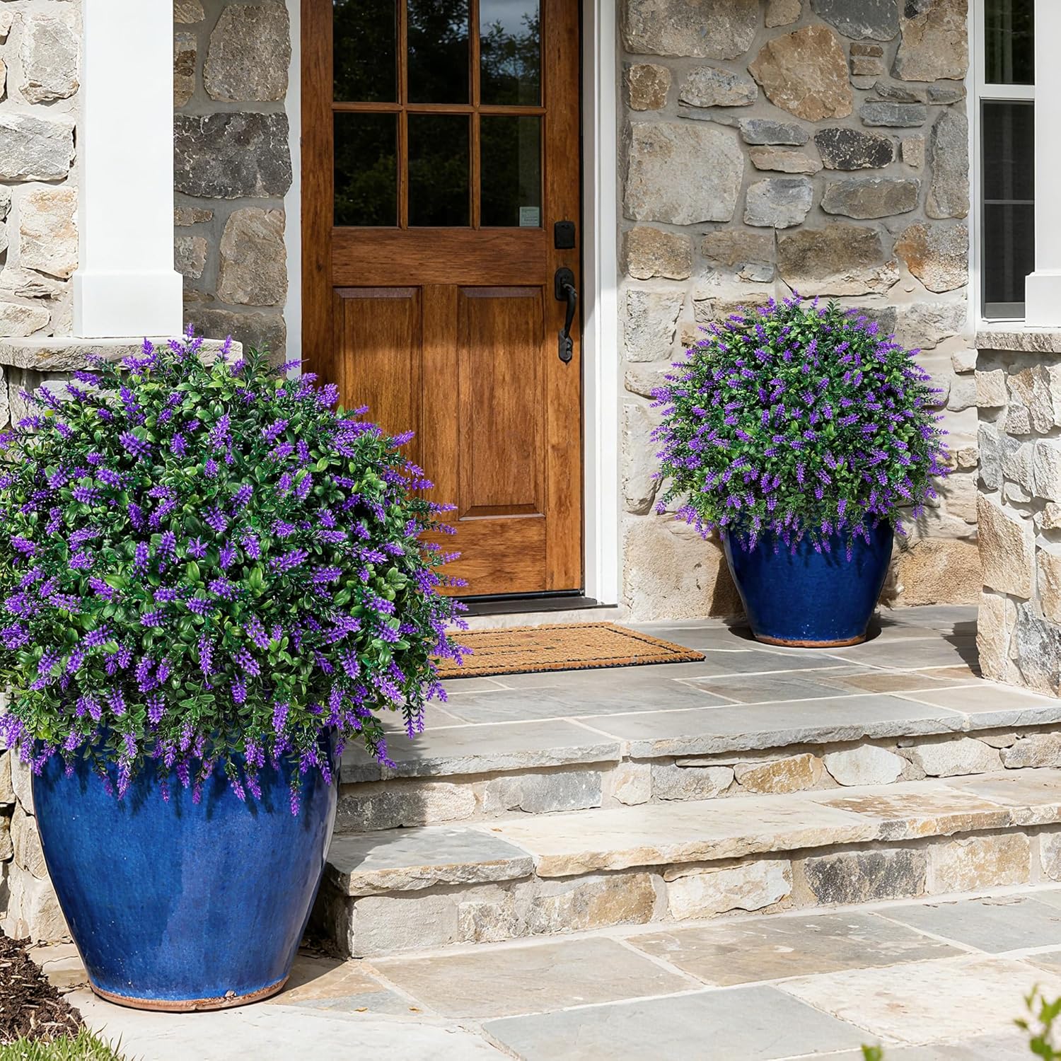 LikSoor 21 Bundles Artificial Outdoor UV Resistant Flowers No Fade Fake Outside Flowers Plastic Greenery Faux Shrubs Garden Porch Window Box Home Decoration(Purple)