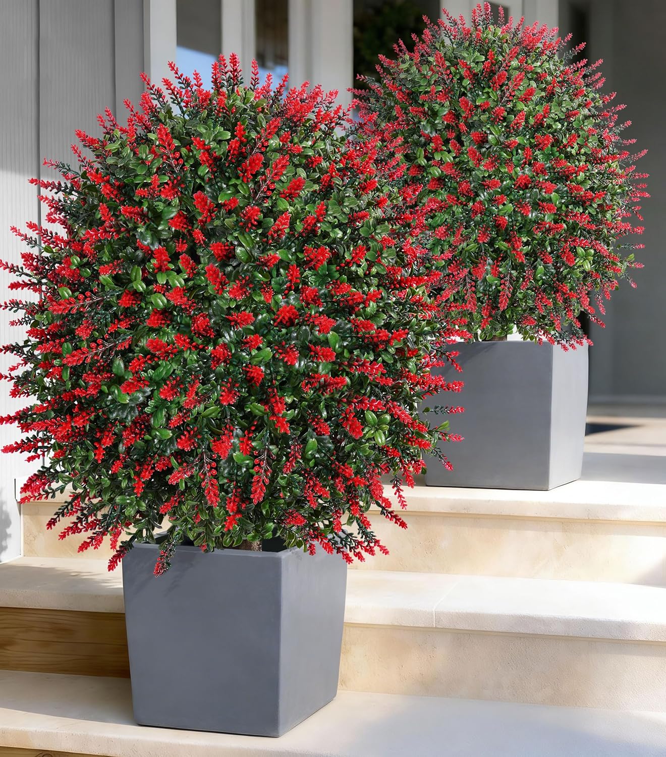 Gladeup Faux Boxwood Balls for Outdoor Planters Topiary Set of 2,UV Resistant Artificial Shrub Bushes Trees with Spike for Porch,Indoor,Garden