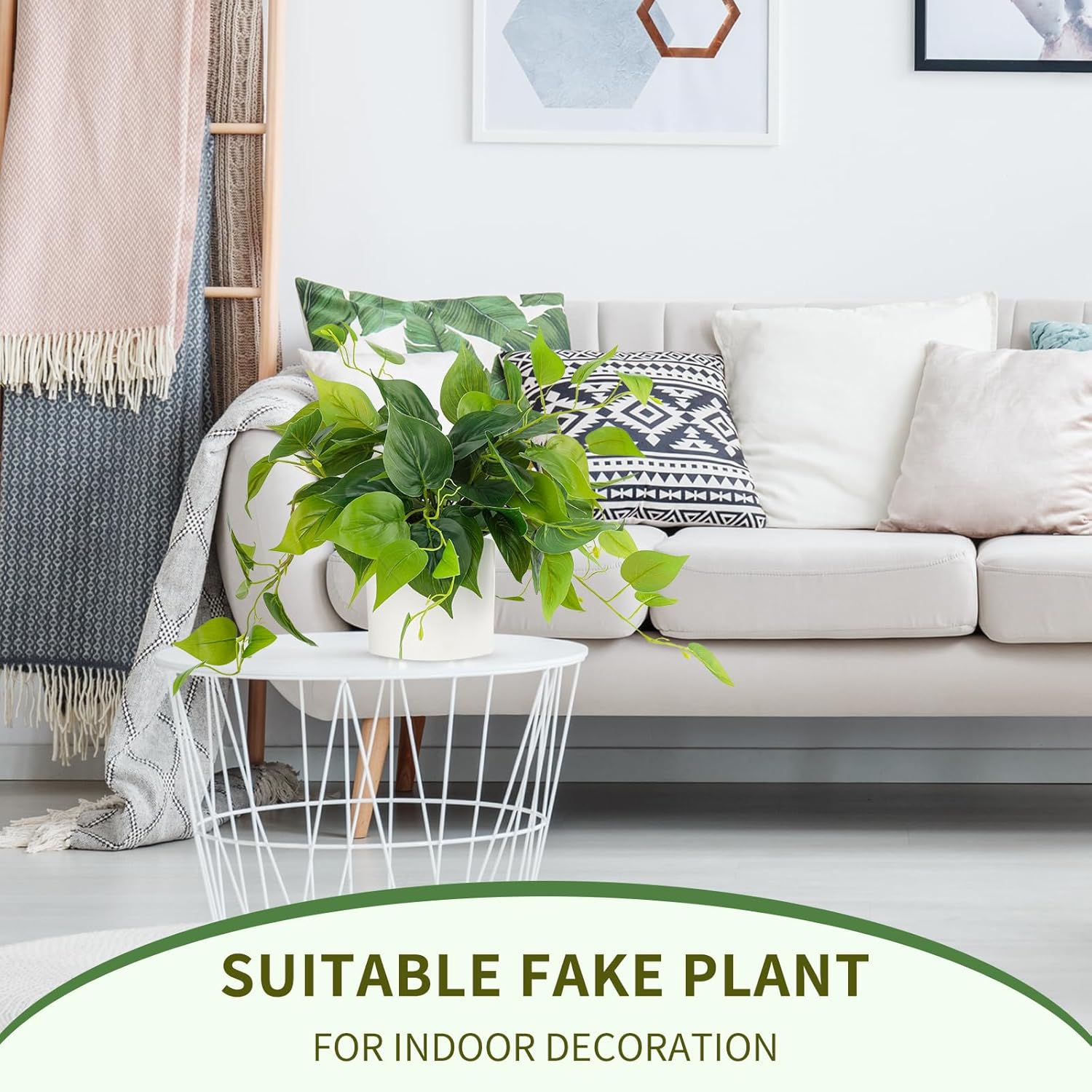 BLEUM CADE Fake Hanging Plants, 2pcs Artificial Hanging Plant, Faux Pothos Vines Greenery for Wall Home Living Room Office Indoor Outdoor Decor (No Baskets)