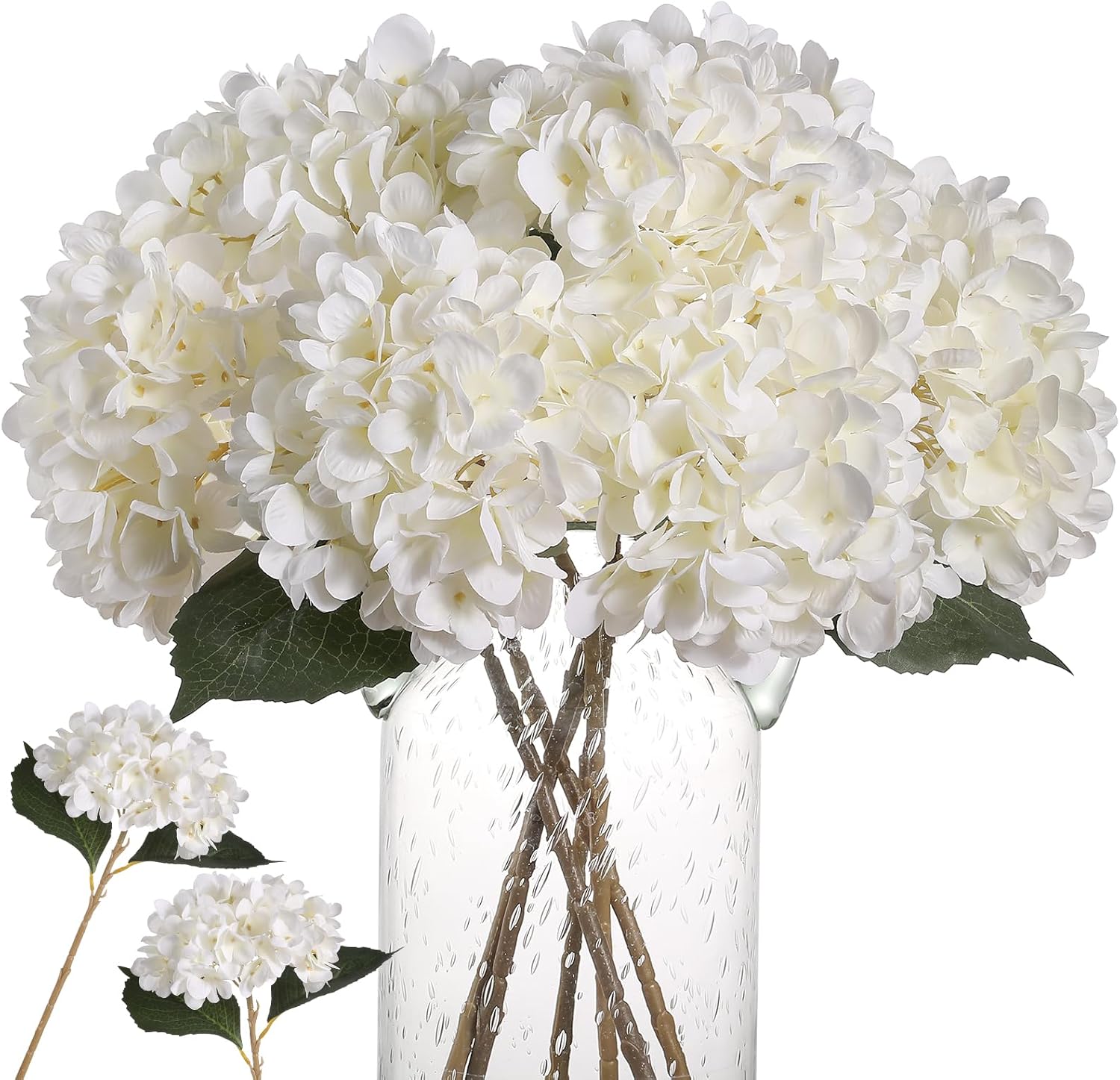 florisso 6 PCS Artificial Cherry Blossom Branches Spring Indoor Decoration, Faux Flowers 34.45" Long Stems Plum Fake Peach Plants Real Touch Silk for Wedding Home Bedroom Party Table Office, White
