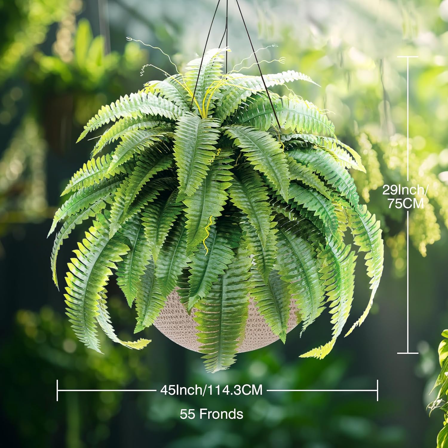 Nearly Natural 48in Artificial Boston Fern, Set of 2 - Large Hanging Fake Plant Wall Decor with 67 Fronds, Faux Fern Vines that Look Real for Home and Office Decor