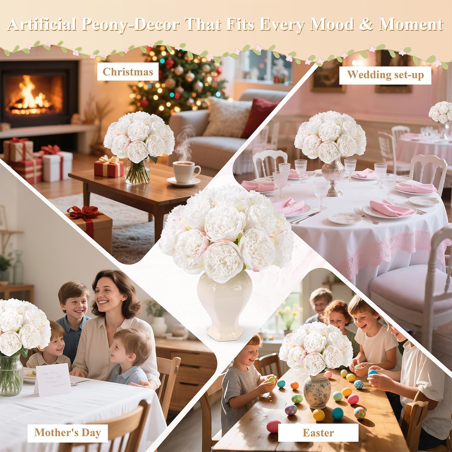Auihiay 64 PCS Artificial Hydrangea Flowers, Silk Hydrangea Full Flowers Heads with Stems for Wedding Centerpieces, Home, Garden, Baby Shower, Party Decoration (Ivory)