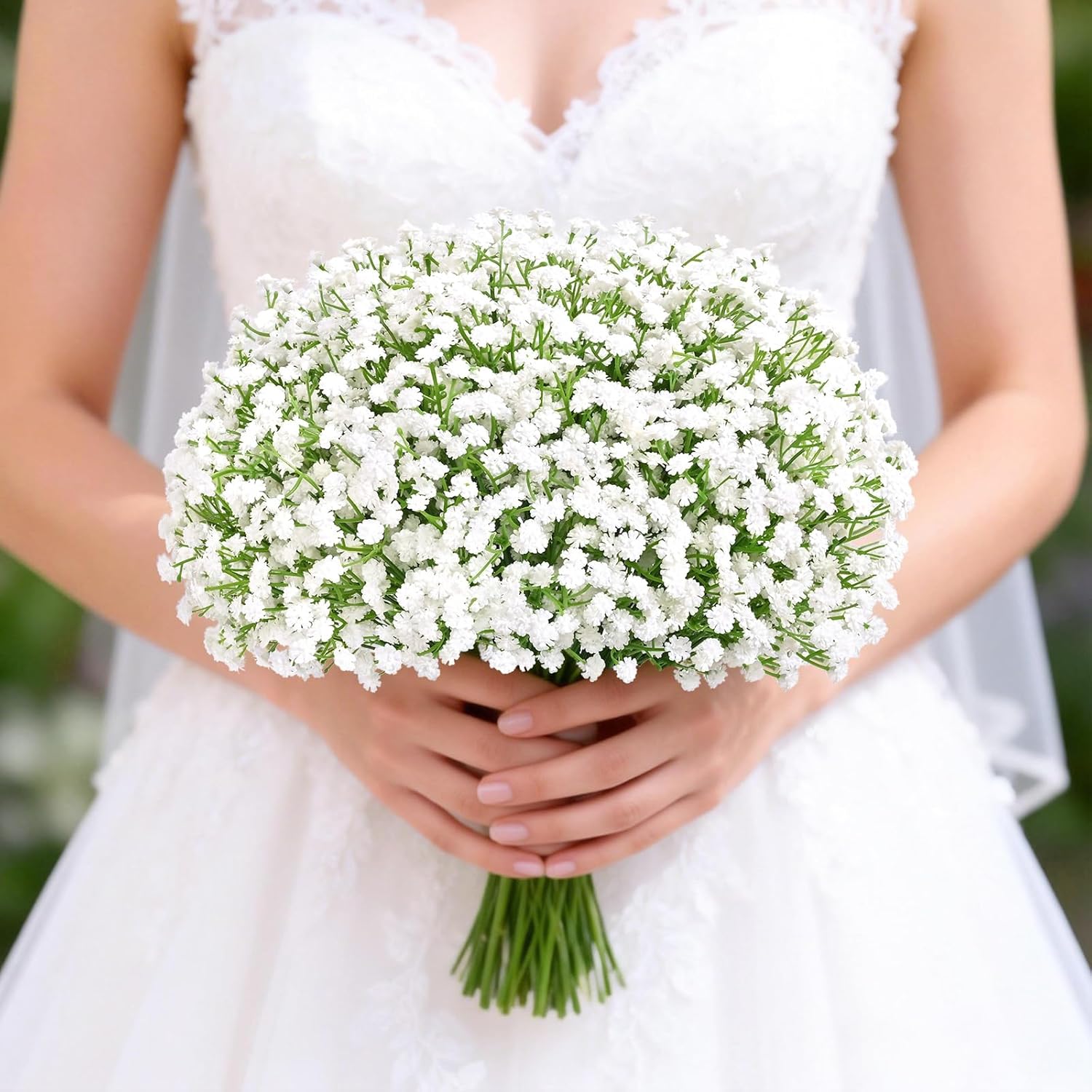 Ammyoo 4Pcs Cherry Blossom Branches Artificial Flowers for Spring Summer Indoor Decoration,Faux Long Stem Artificial Flowers for Wedding Home Office Bedroom Party Table Centerpieces Decor(White)