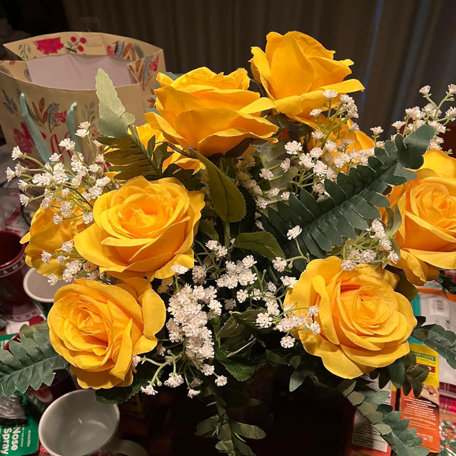 Ammyoo Artificial Flowers for Outdoors Decoration, 6 Bundles Silk Marigold Flower UV Resistant Look Real Faux Plants for Garden Porch Planter Patio Balcony Yard Home Decor (Yellow White)
